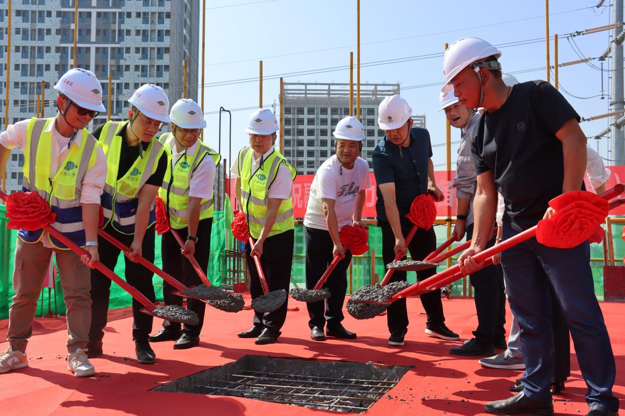 高楼平地起,封顶好吉时。在融盛电力集团董事长陈志刚先生的带领下,嘉宾代表手执金锹,共同完成了7#楼主体工程最后一注混凝土的浇筑。随着最后一方混凝土浇筑到位,现场礼炮燃响,喜封金顶仪式圆满礼成。